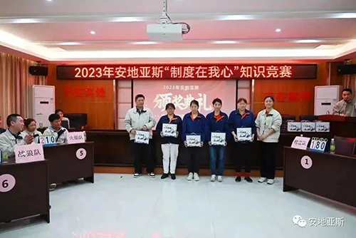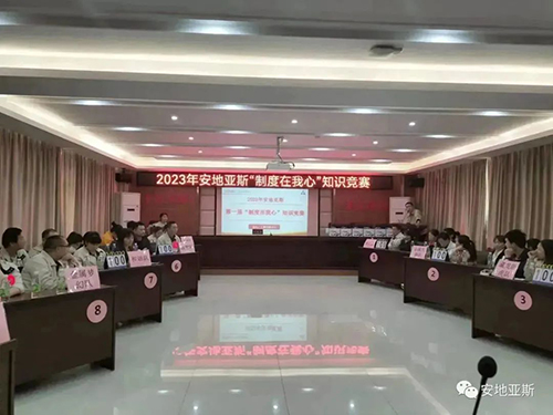 陽春三月、風(fēng)和日麗。為推動公司制度建設(shè)的整體規(guī)劃、鞏固、提升全體員工的綜合素質(zhì),以賽促學(xué)、以學(xué)促干,形成公司自主學(xué)習(xí)的良好氛圍。經(jīng)公司行政人事中心精心策劃,2023年3月10日下午2點(diǎn),在經(jīng)開區(qū)黨群活動中心隆重舉行了2023年安地亞斯第一屆“制度在我心”知識競賽。此次競賽內(nèi)容涵蓋企業(yè)文化、行政制度、產(chǎn)品知識、安全知識、品質(zhì)知識、操作過程等全方面內(nèi)容。經(jīng)過各部門嚴(yán)格選拔,共有9支隊(duì)伍45人參賽。
